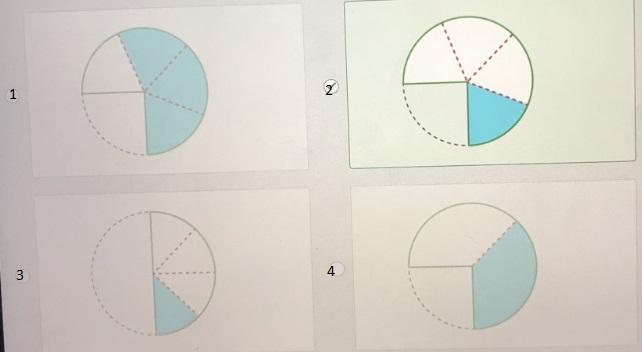 This is an extremely clever question, and I think you got it right. The semishaded area on the lower left is 1/4 of the circle. The rest of the circle represents 3/4 of the circle. If you take 1/4 of the 3/4 that is left, you have the answer. So that makes your answer correct.