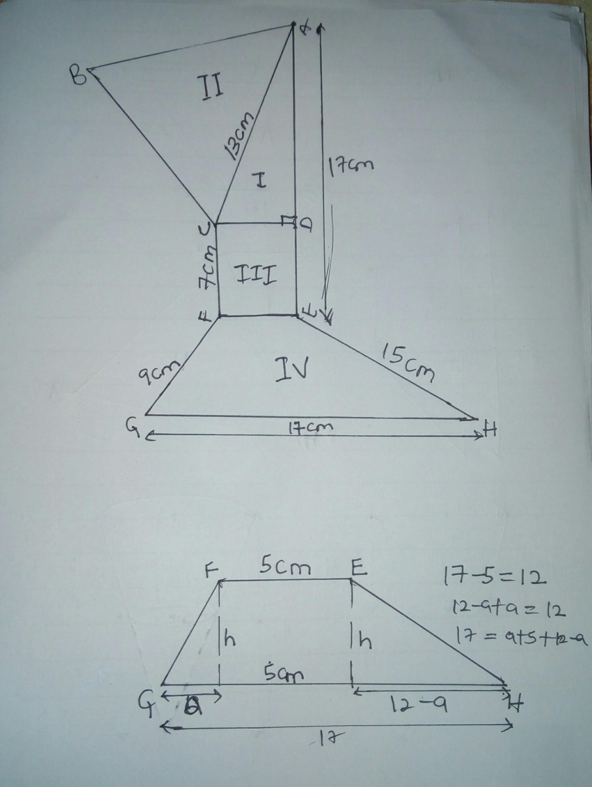 2nd ∆: 15² = h² + (12-a)²