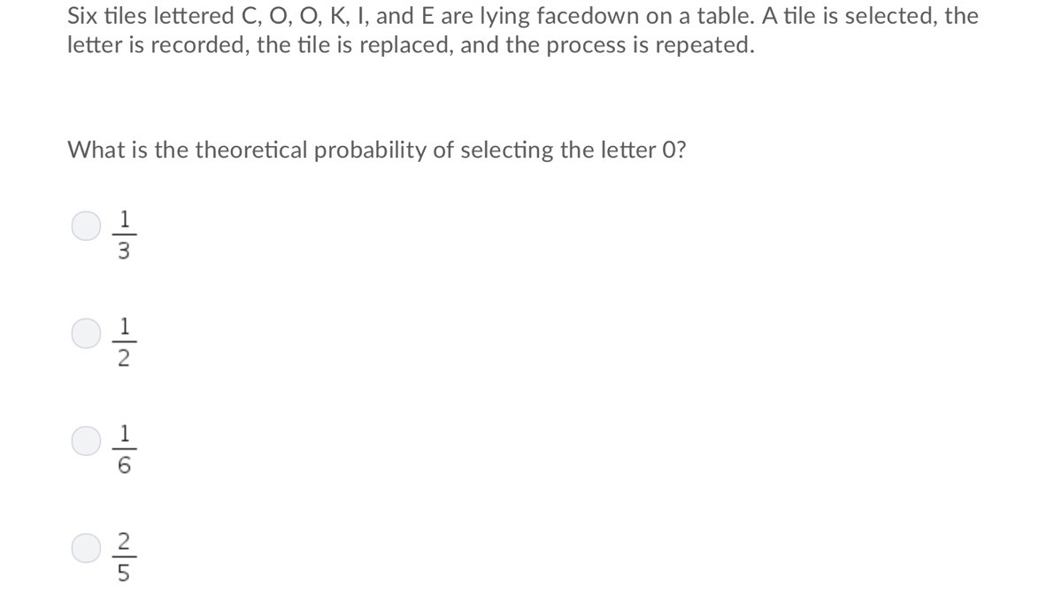 P( O ) = \frac{2}{6} = \frac{1}{3}