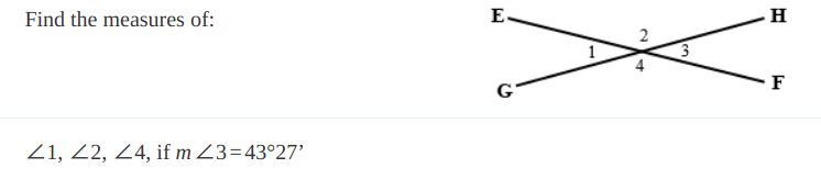 m∠2 = 180° - m∠3 = 180° - 43°27' = 136°33'