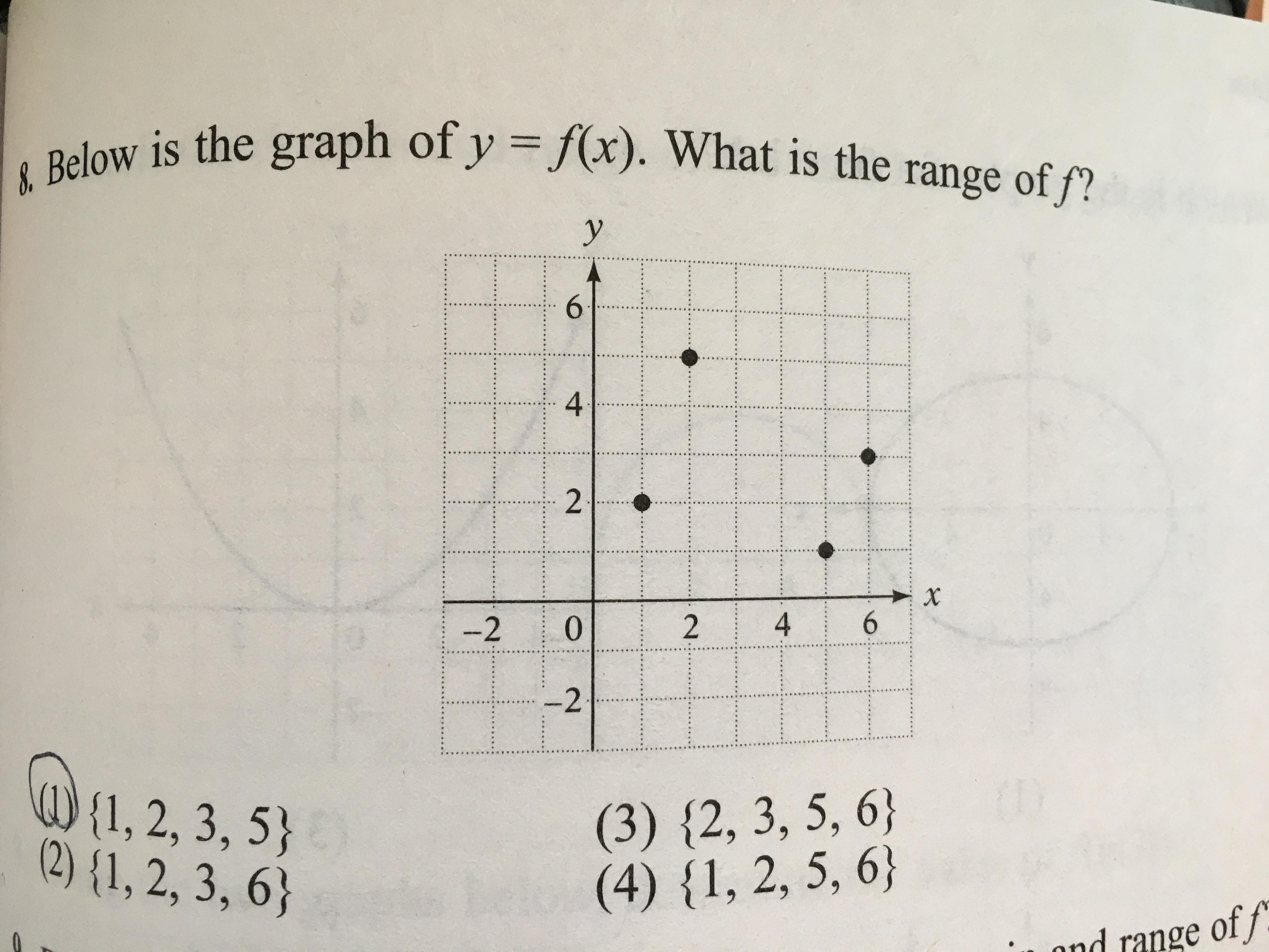 The range is the set of possible y values of a function. All you need to do is list off the y coordinates of the points shown. The points on the graph are