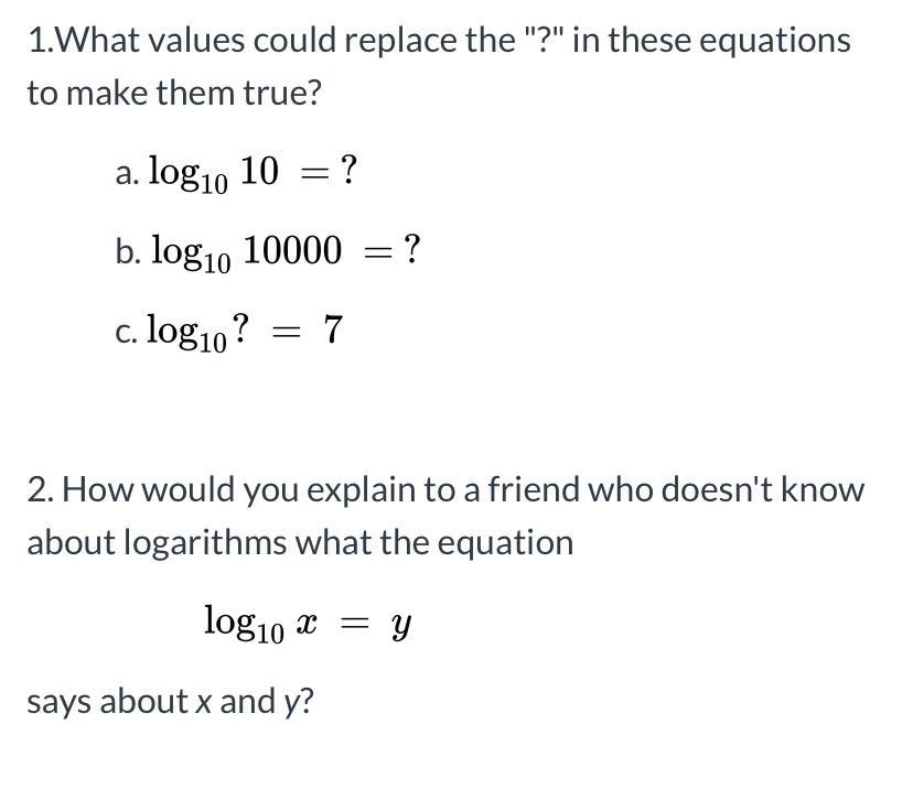 1.What values could replace the "?" in these equations to make them true?
