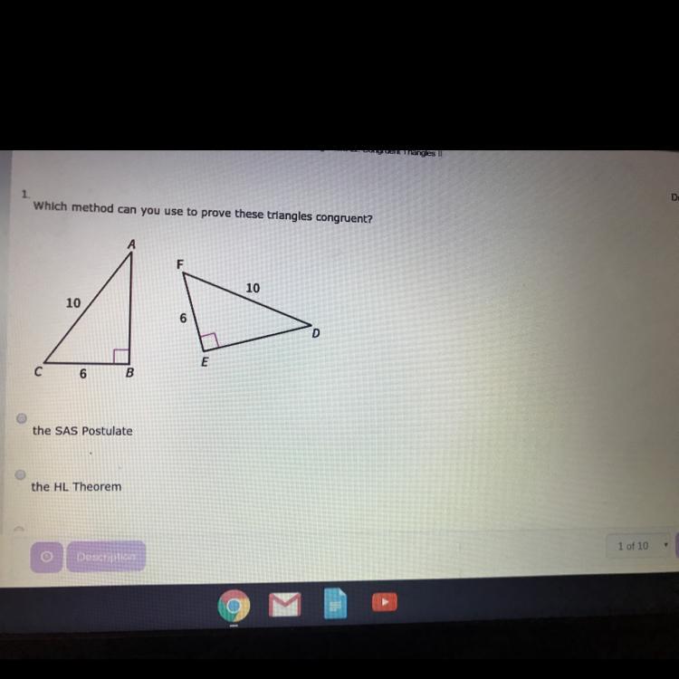 - HL ⇒ hypotenuse leg of the first right angle triangle ≅ hypotenuse