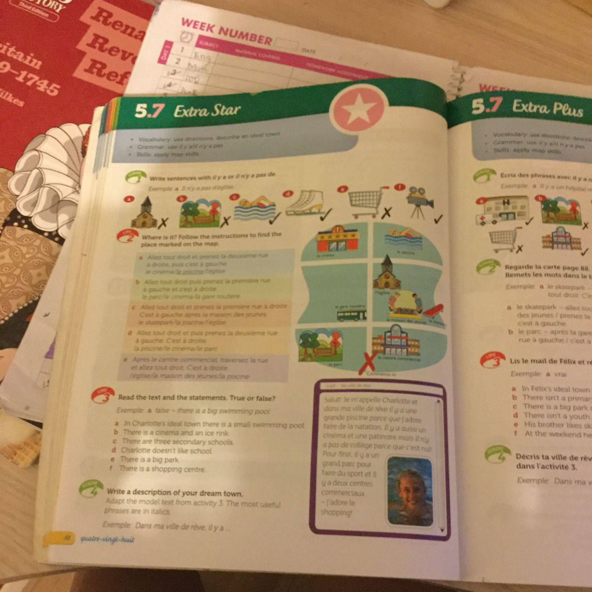 Dans ma ville de rêves il y a une immense forêt parce que j'adore la nature. Il y a aussi un jacuzzi et une grande piscine mais il n'y a pas d'usines parce que je déteste la pollution. Pour finir il y a un grand jardin fleuri et un terrain de golf. -J'adore le golf !