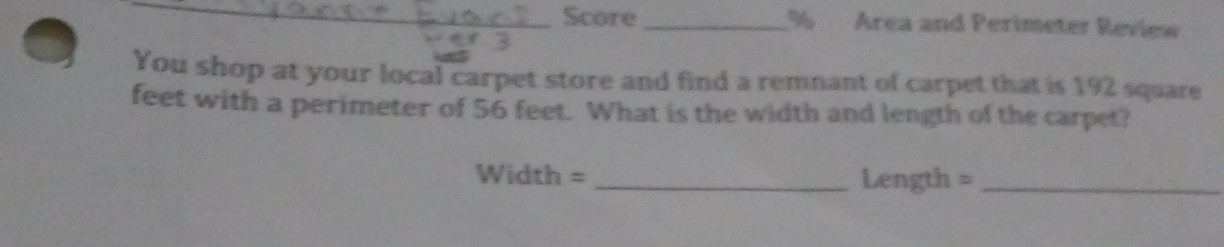 We have a system of 2 equation in 2 unknowns. LW = 1922L + 2W = 56 Divide the second equation by 2: L + W = 28 Subtract W from both sides.