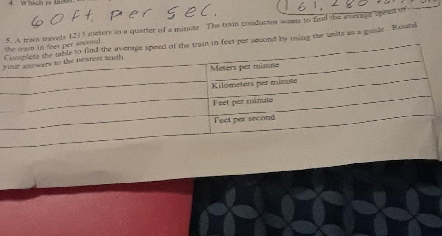 a train travels at 1215 mean in a quarter of a minutecomplete the table to find the average speed of the train and feet per seco