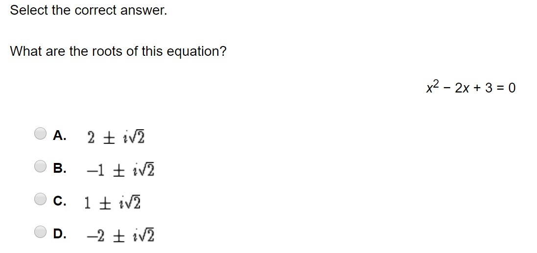 x = 1 ± i√2 → C