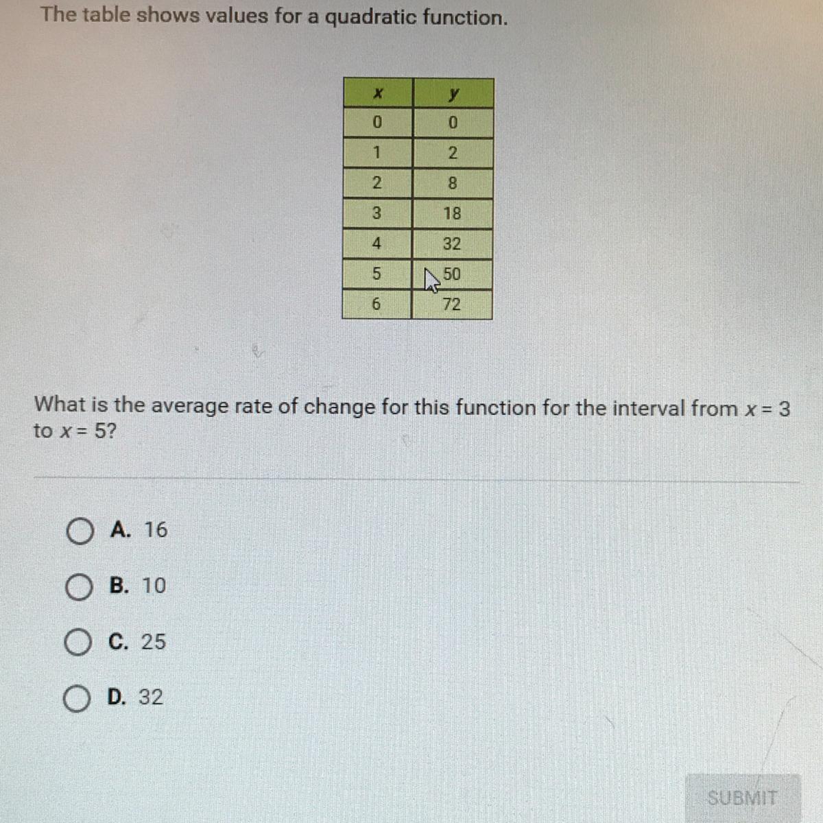 So the rate of change of function between x=3 and x=5 is 16 ..