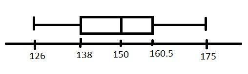 The 5-number summary is maximum= 175, minimum=126, median=150, Q₁=138 and Q₃=160.5.