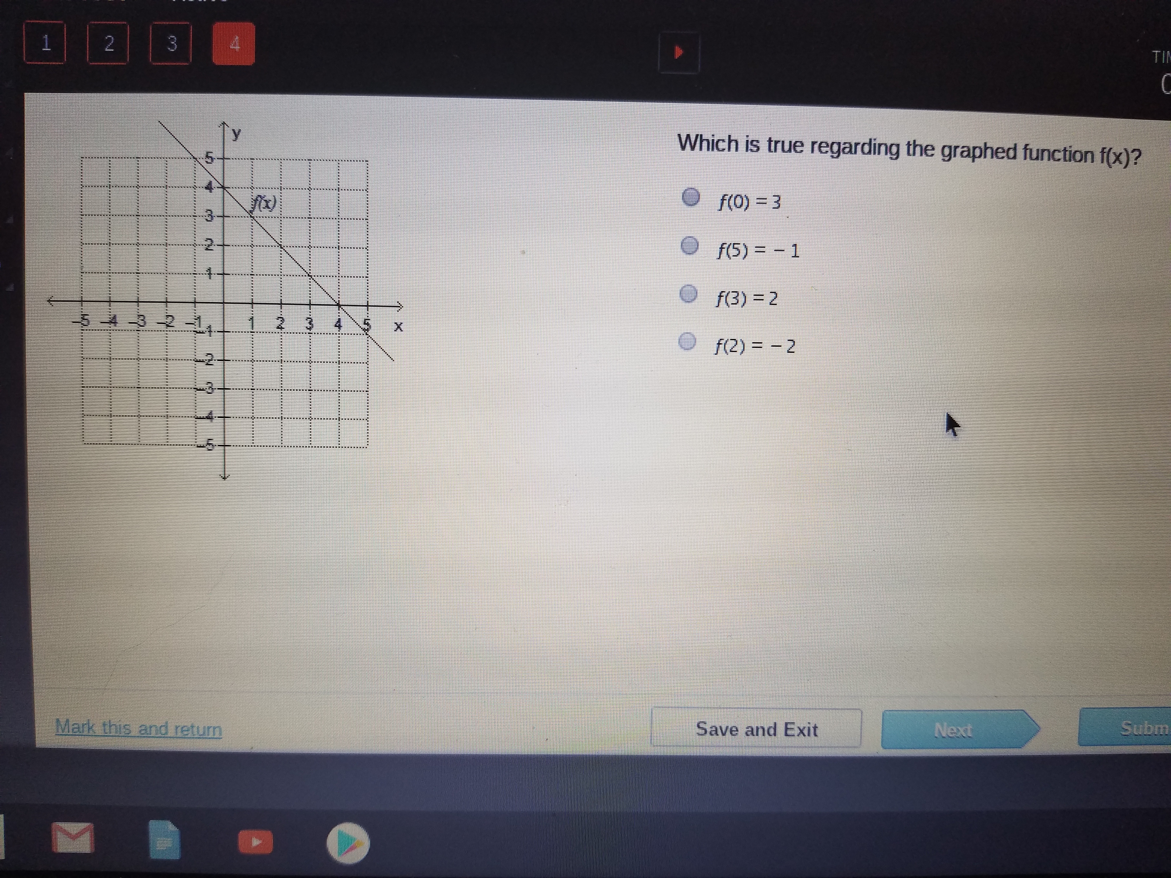 Since, f(x) is passes through the points (0,4) and (4,0),