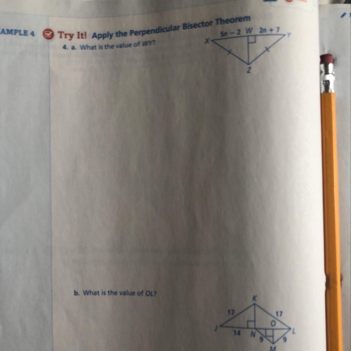 4a) The length of WY is congruent to the length of WX so set them equal and solve for n.