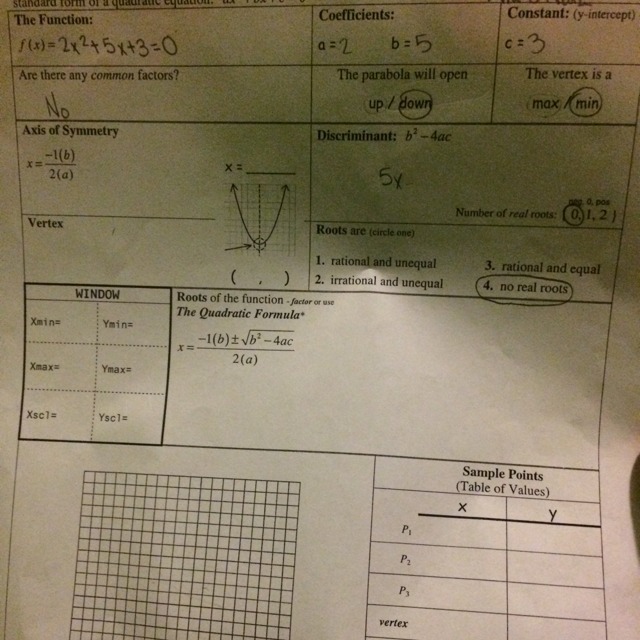 .. b^2 -4ac = 5^2 -4*2*3 = 25 -24 = 1