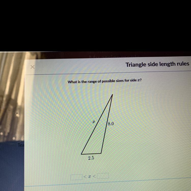 the idea being that sides of 2.5 andd 8 are fixed, what's are the possible lengths of "x"?