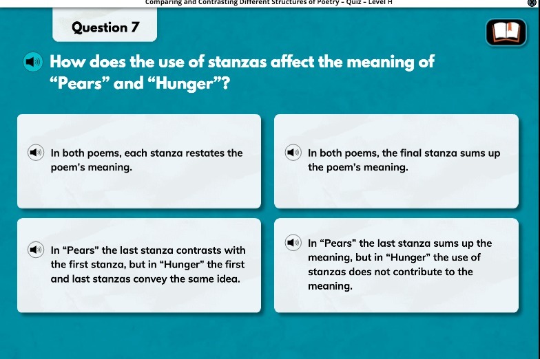 The correct answer is "In both poems, the final stanza sums up the poem's meaning."