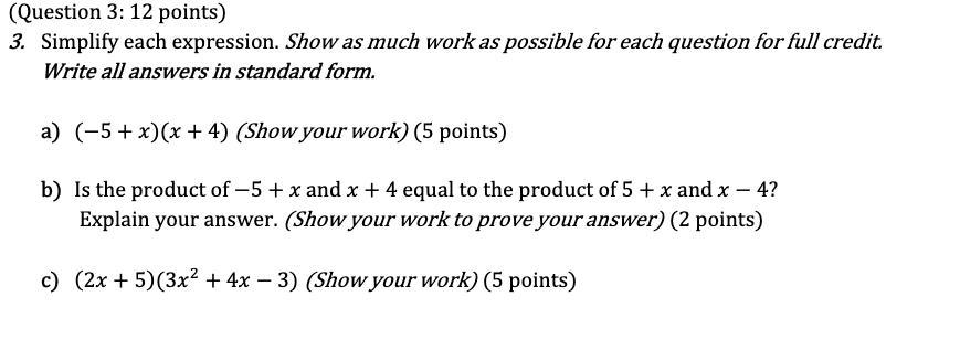 c) (2x + 5)(3x² + 4x - 3)