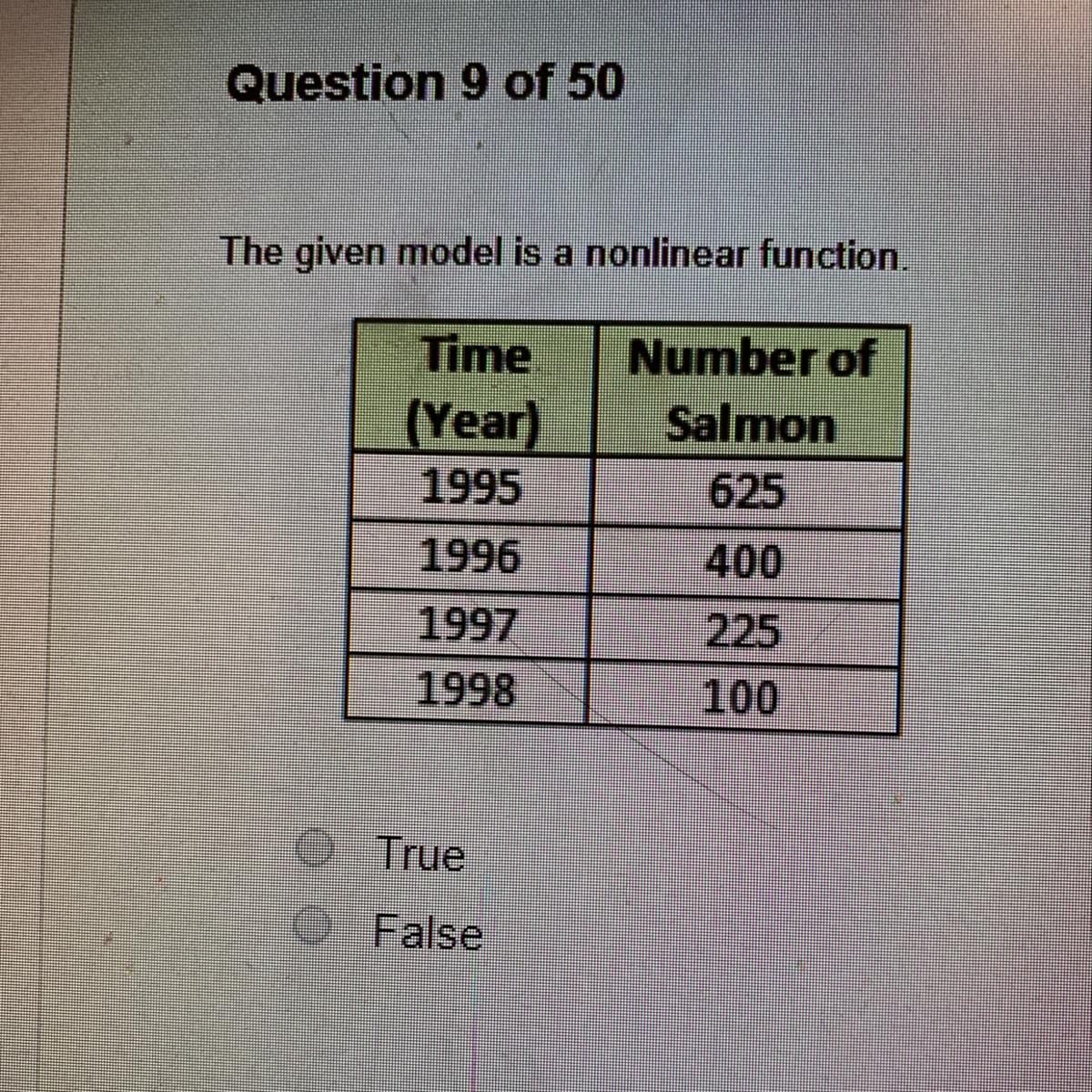 The first row of the table is (x,y) = (0, 625) with y being the number of salmon.