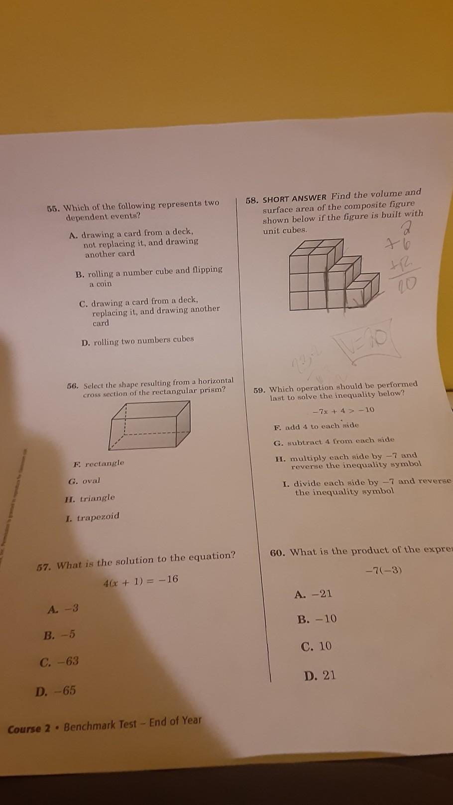 D i’m pretty sure; -5 x 2 is -10 x 3 = 30