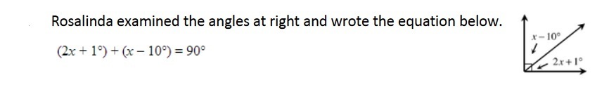 Given : (2x+1) + (x-10) = 90