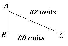 Given : Triangle ABC with right angle at B and BC = 80 and AC = 82