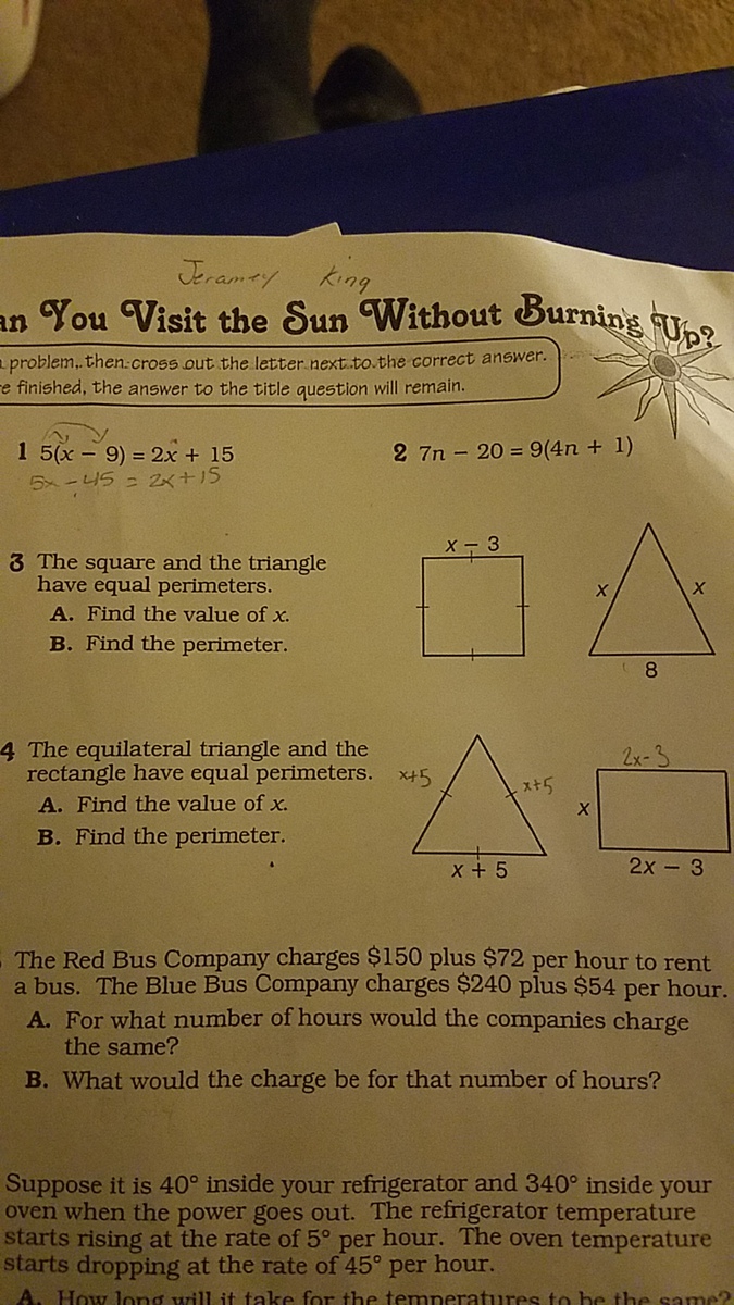 Step-by-step explanation: Given that the square and the triangle have equal perimeters.