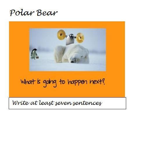 The penguin is going to clash the symbols together. The polar bear will wake up. He will chase the penguin across the ice. The polar bear falls through the ice. The penguin helps him get out of the ice. The polar bear is out safely. They are best buds from then on.