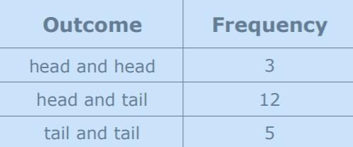 You flip two pennies 20 times and record the results. Use the table to find the experimental probability of tossing two tails.