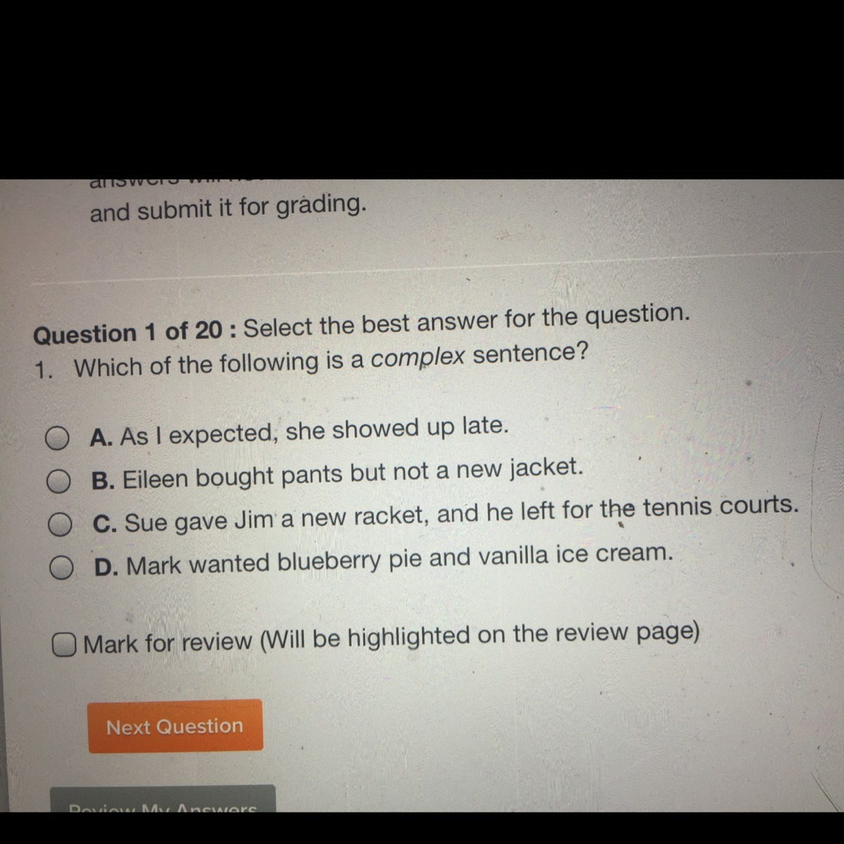 B and C aren't correct, because they aren't complete predicates - something is missing.