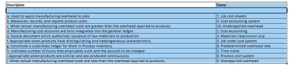 Match the items in the two columns below by entering the appropriate code letter in the space provided.