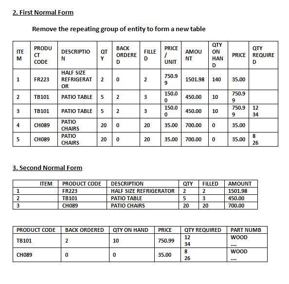 6. A customer can place numerous orders. Products can be ordered by many different customers. The same part can be used in numerous products. (eg. a screw can be used in a chair, bar stool etc.)