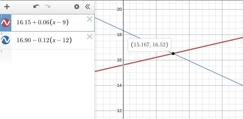 Let us make patrons the independent variable, the two points are: (1314, 11333) and (1544, 13518).