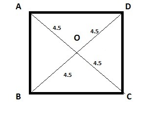 OC = OA = 4.5 inches and OB = OD = 4.5 inches