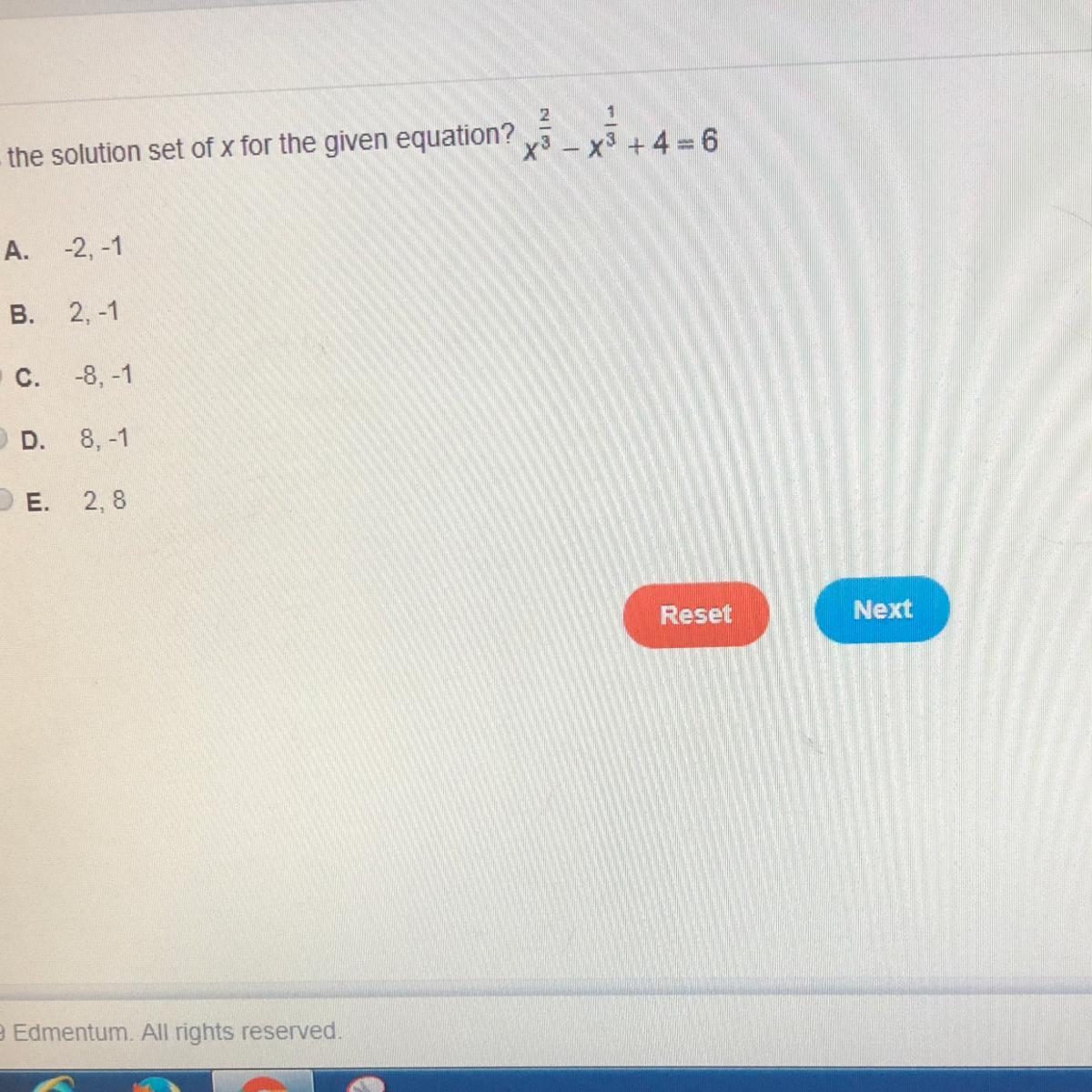 x^{1/3}  = 2  or x^{1/3} = -1