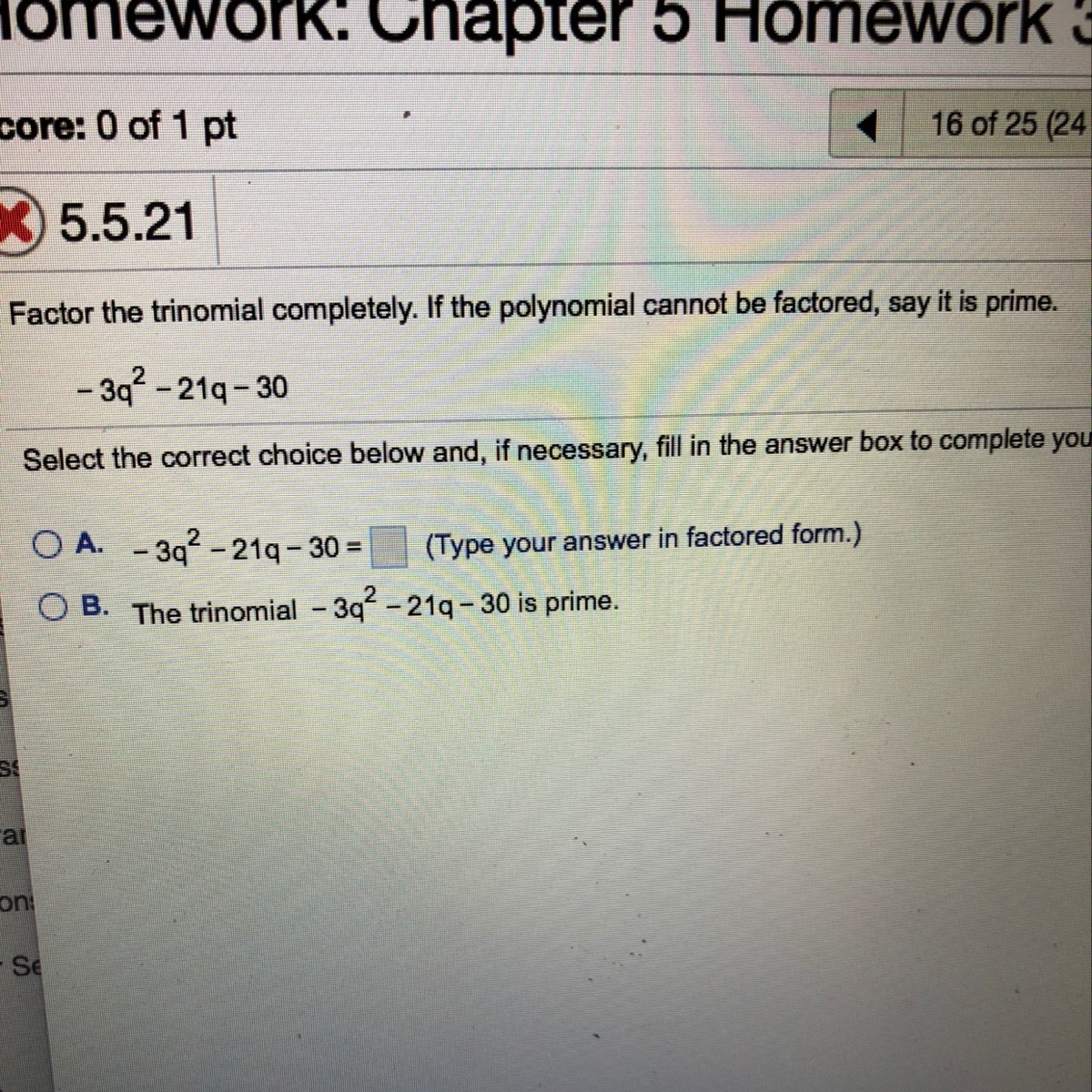 When we factor out the GCF of -3, we get: -3(q^2 + 7q + 10)