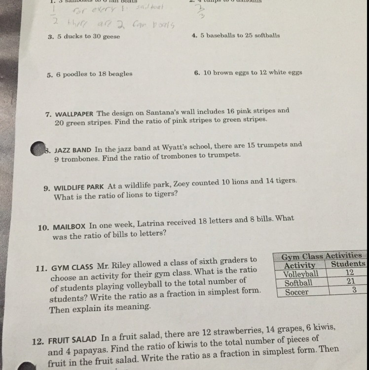 9 is 1:2.4, 10 is 1.8:0.8, 11 is 1:3 and 12 is 1:6