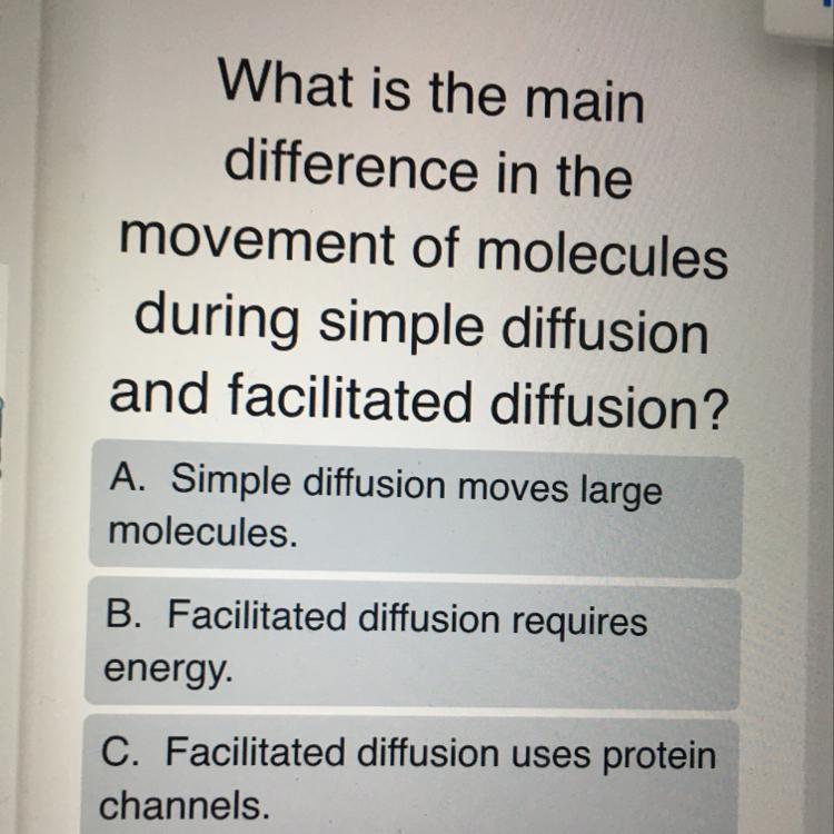 Simple diffusion does not require energy: facilitated diffusion requires a source of ATP. Simple diffusion can only move material in the direction of a concentration gradient; facilitated diffusion moves materials with and against a concentration gradient.