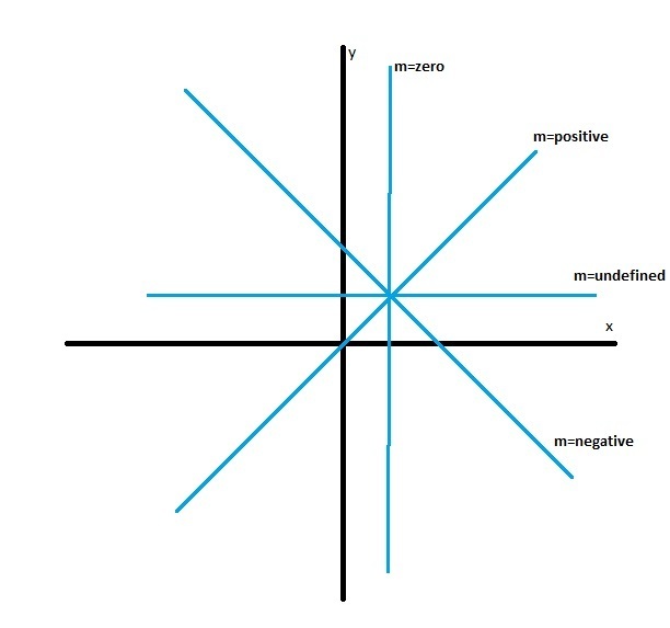 If slope is represented by m, then the line having different slopes are shown in below figure.