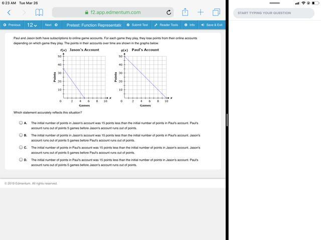 B) The initial number of points in Jason's account was 15 points less than the initial number of points in Paul's account, Jason's account runs out of points 5 games before Paul's account runs out of points.