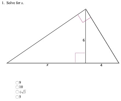 x^2 + 6^2 = m^2 (I am calling the unknown side "m)
