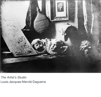 The most important visual factor of a daguerreotype is that the image is on a bright mirror-like surface of any metal that is highly polished, silver-plated sheet of copper, sensitized with iodine vapors. It will appear either positive or negative image depending on the lighting conditions. It also depends upon the fact that whether a light or dark background is being reflected in the metal surface.