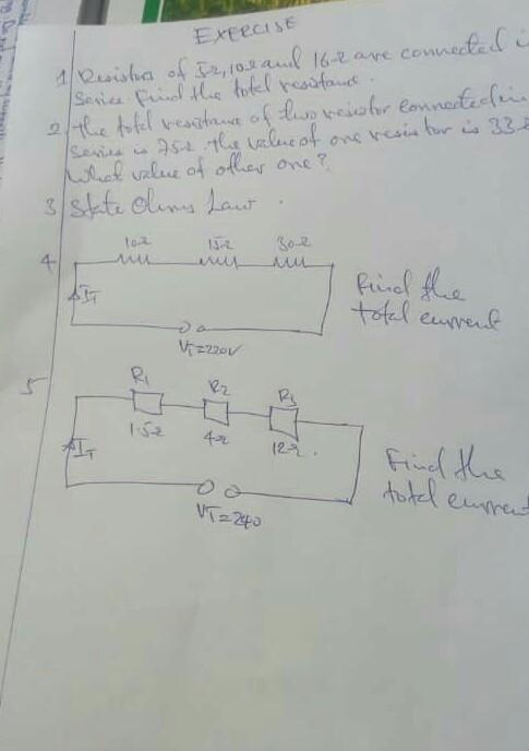 1.  "Resistors of 5Ω, 10Ω, and 16Ω are connected in series.  Find the total resistance."