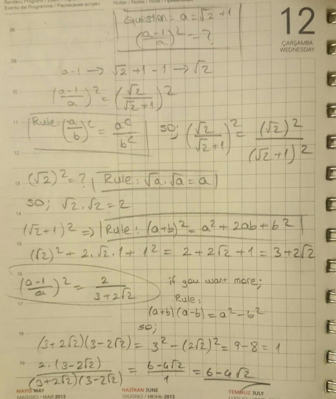Then, the denominator is: "a" ; so we plug in: "√2 + 1 " ; for "a" ;