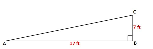 The ramp (its profile view) forms a right triangle with side lengths equal to 7 ft and 17 ft, where 7 ft is the height of the ramp, and 17 ft is the distance of <span>the building to the end of the ramp.