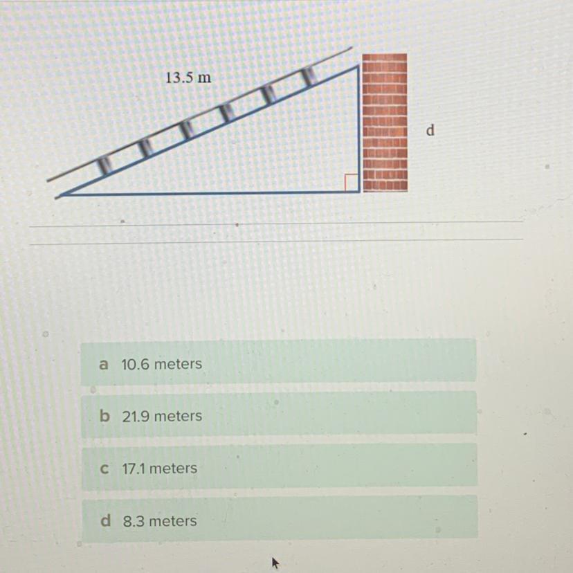 Using pythagorean theorem, 36² - 15² = 1296. √1296 = 36 meters