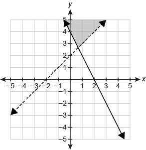 <em>Looking at other choices, we see that the first two graphs do not even represent the graphs of our inequalities, and the third graph does represent the inequalities but shades the wrong region. </em>