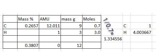 Moles C = 9 g/12 g/mole = 0.70 moles C