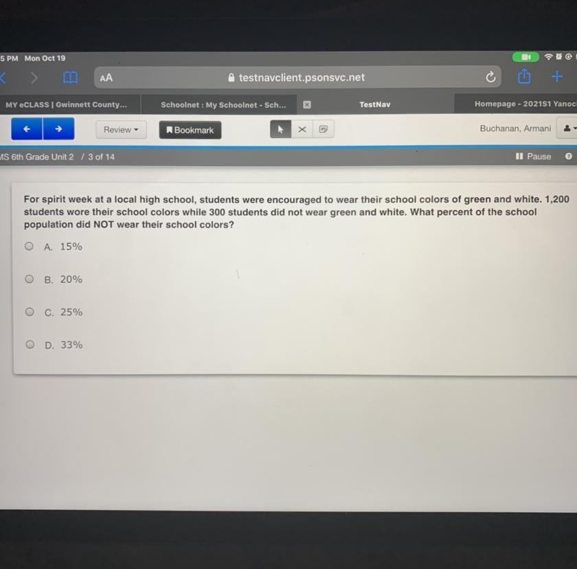Then put 1500 as the denominator and 300 as the numerator since we're talking about the number of students that did NOT wear their school colors. our fraction should then be 300/1500.