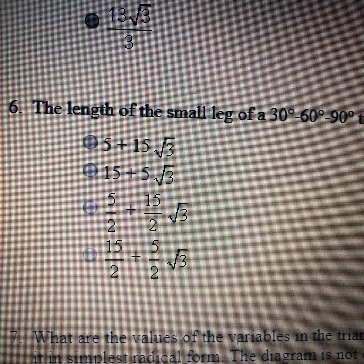 The longer leg is equal to multiplying the shorter leg by the square root of 3