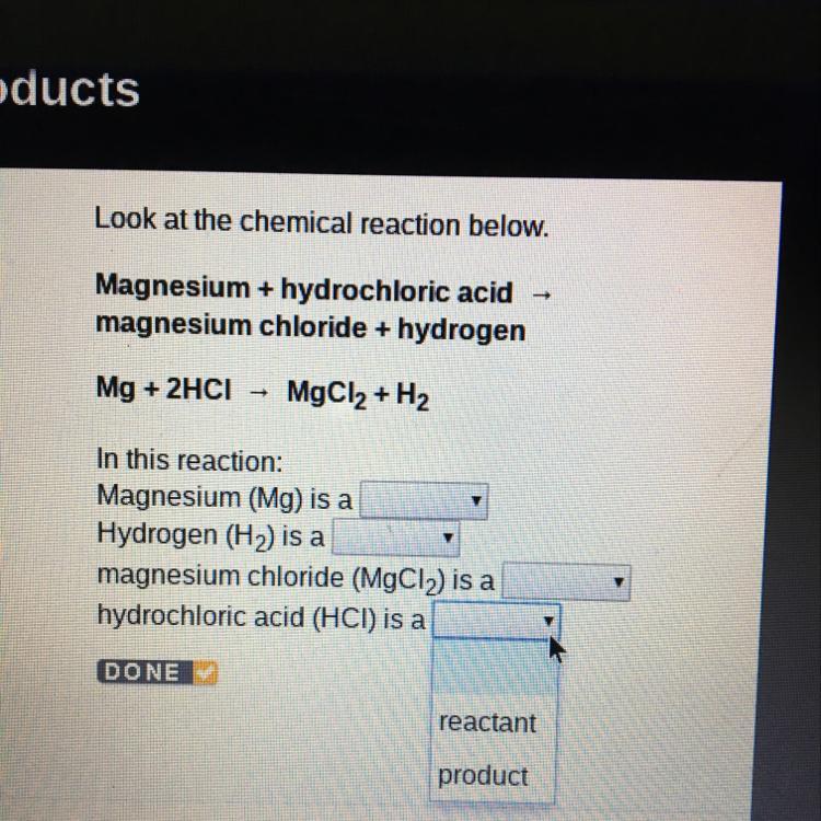 In general, things on the left side of the chemical reaction are reactants (things that react) and things on the right side are products (things that are produced).