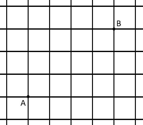 The number of path we can take to walk from A to B via a 7 unit path while staying on the grid is 35 paths