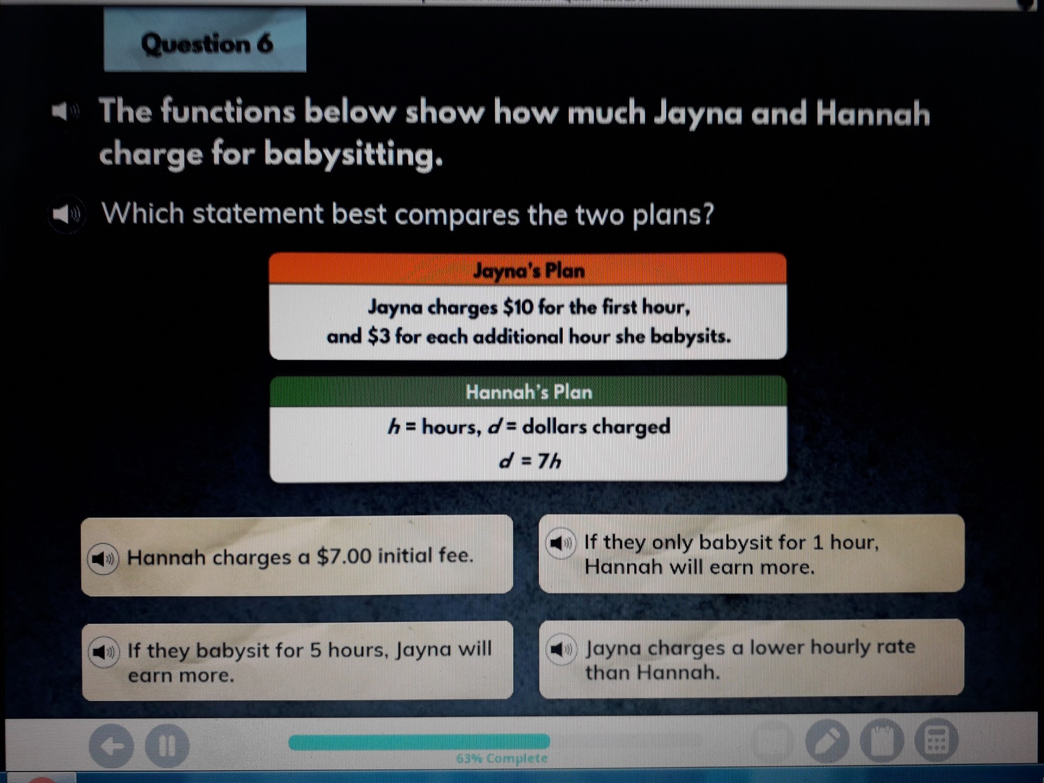 Since, the rate of charge by Hannah is more( i.e. $ 7) then Jayna (i.e. 3)